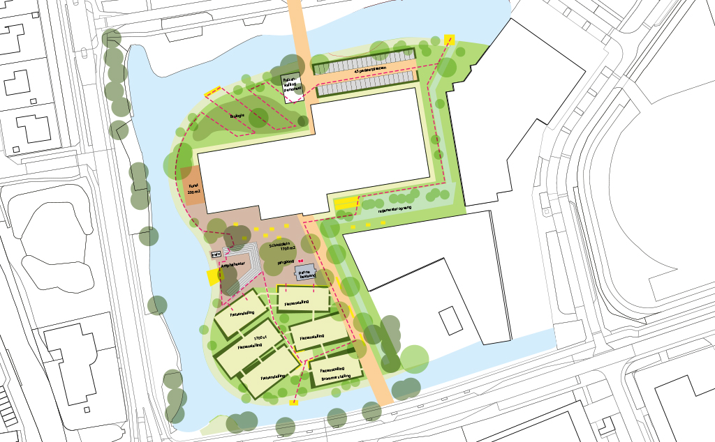 De locatie van het Da Vinci college ligt precies op de overgang van werk/sportgrid ten zuiden van de Flevostraat en de amorfe woonerf cellen die gelegen zijn tussen ruime waterrijke groenaders.
