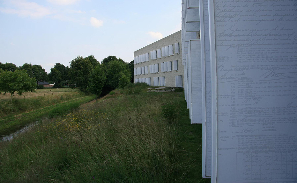 Het basisidee van het ontwerp van het terrein rondom het gemeente huis gaat uit van het bestaande landschap, weiland. Op deze manier is de aansluiting op de omgeving naadloos. Het landschappelijke karakter wordt doorgezet tot aan de gevels van het gebouw: de schapen grazen voor de ramen.