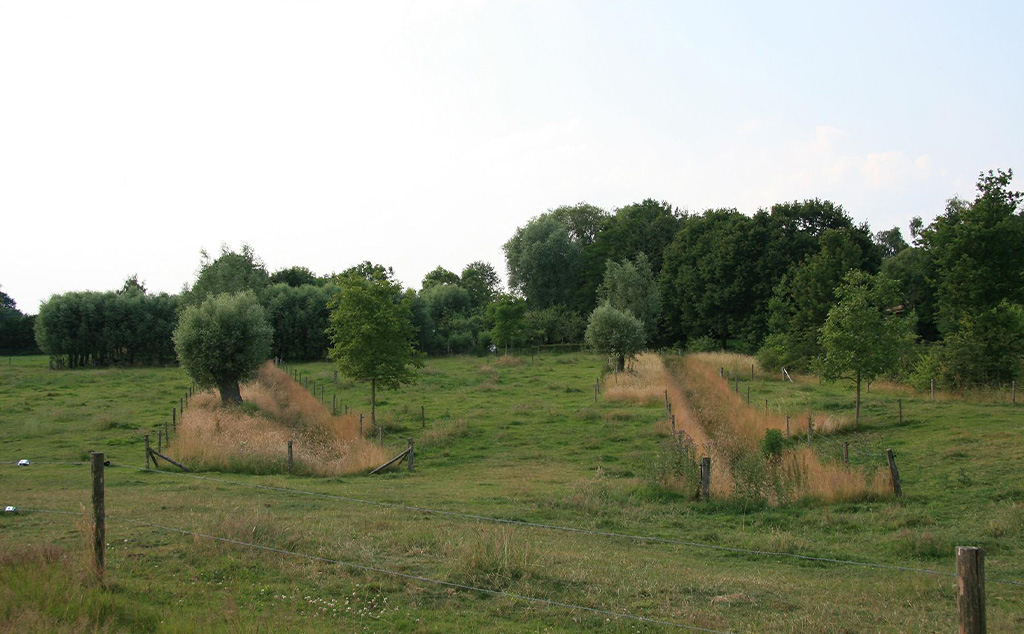 Het gebouw in het weiland wordt naar de omgeving toe verzacht door verschillende soorten bomen. De boomkeuze hebben we laten afhangen van de eisen die nodig zijn voor een goed foerageergebied van de steenuil die in de omgeving voorkomt.