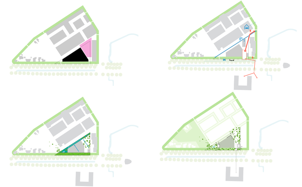 De 19de -eeuwse universiteitscampus wordt verdicht. Kenmerkend voor deze campus zijn de kloeke gebouwen op een brede plint van groen, de groene kraag met prachtige bomen. Tussen de bebouwing is een afwisseling van pleinruimtes en hoven, gebruik, mix van groen en verharding. IGVO vormt samen met de Gele Scheikunde en de villa’s een eigen eenheid, het ontwerp voor de Internationale school voegt zich naadloos naar de kenmerken van deze stedelijke campus.