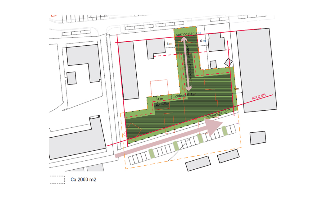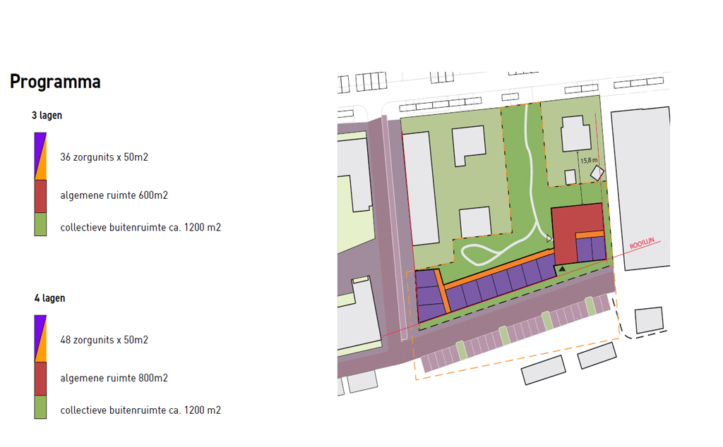 48 appartementen met 800 m2 algemene ruimte, 19 ppLocatie
