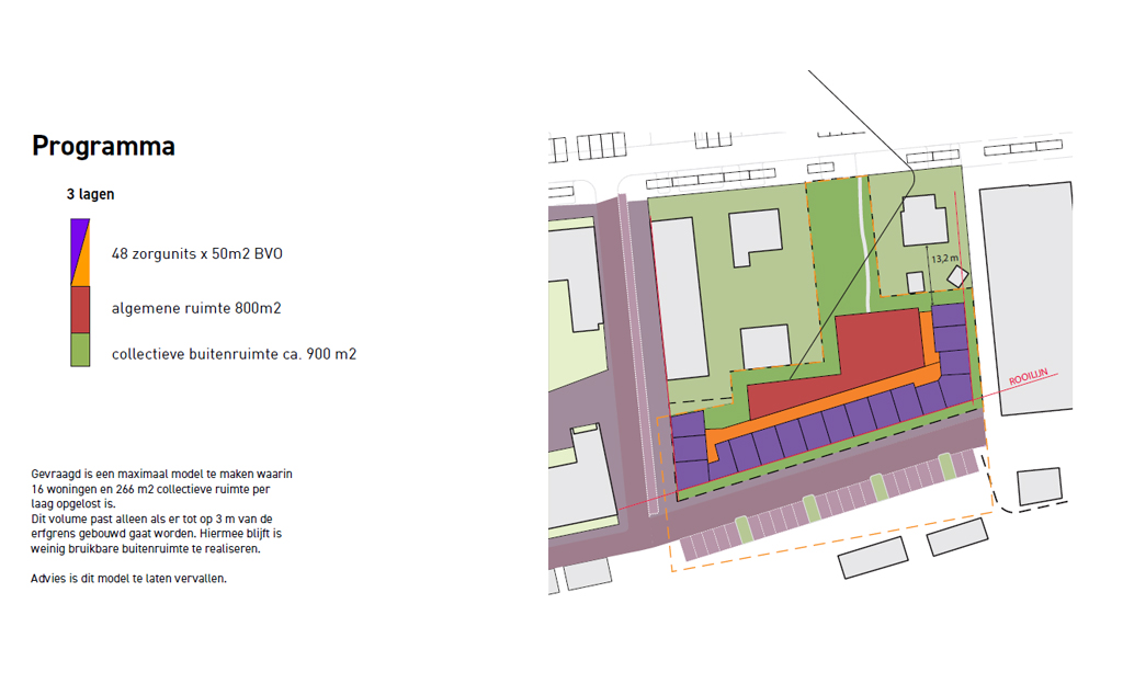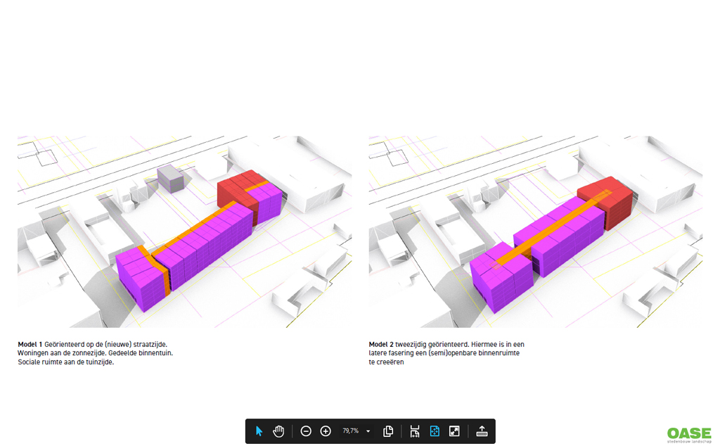 Voor de gemeente Wijchen heeft OASE een massastudie gemaakt op basis van de stedenbouwkundige uitgangspunten die het bureau eerder mocht maken voor de transformatie van het bedrijventerrein De Kraanvogel. Het betreft de mogelijke inpassing van zorgwoningen voor patiënten met niet aangeboren hersenletsel. Deze nieuwe locatie wordt gezocht tussen de Kraanvogelstraat en het spoor.
