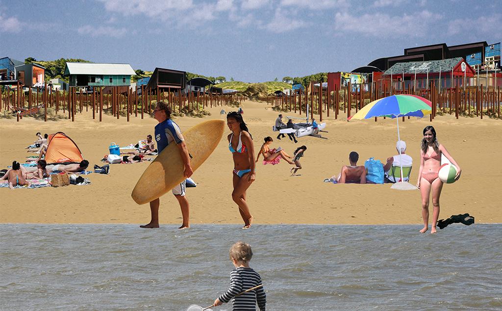 Het resultaat is een palenmachine die zand vangt, landschap creëert en woningen faciliteerde.