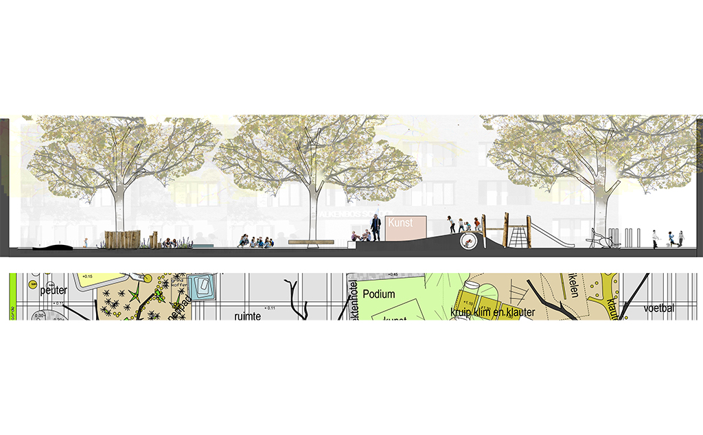 In opdracht van de openbare Montessorischool Valkenbos in Den Haag en de BSO van 2Samen is samen met kinderen, leerkrachten en ouders het schoolplein ontworpen. Aanleiding van deze opdracht was de sloop en nieuwbouw van deze school.